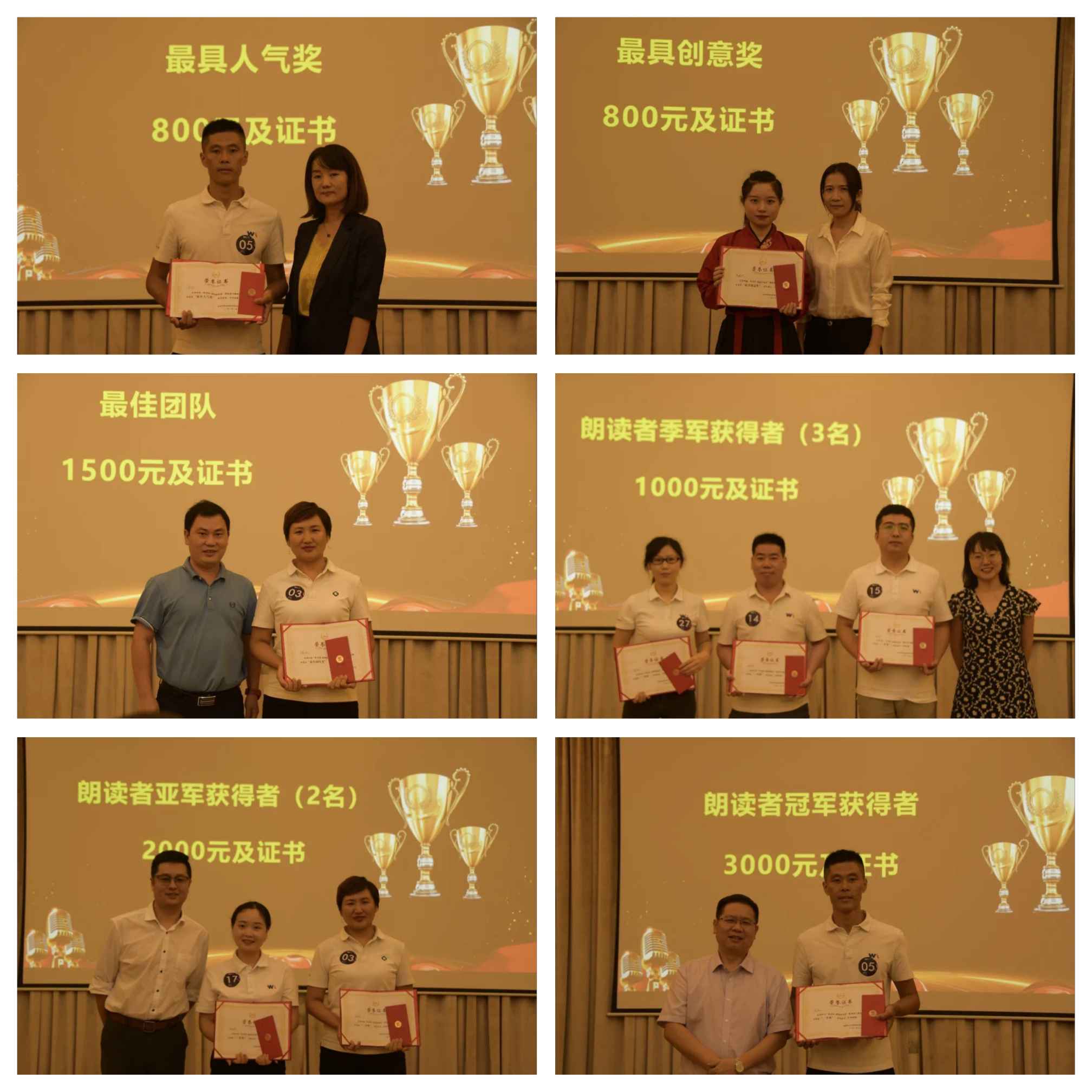 通過(guò)現(xiàn)場(chǎng)的打分統(tǒng)計(jì),最終來(lái)自設(shè)備部的5號(hào)選手李柱榮獲最終冠軍及最佳人氣獎(jiǎng)成為本屆演說(shuō)家最大贏家;6名專家評(píng)委分別為獲獎(jiǎng)選手進(jìn)行了頒獎(jiǎng)。