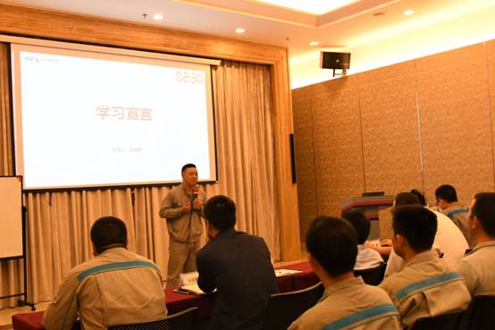 華美板材副總經(jīng)理黃強對開營儀式做總結發(fā)言,黃總提到:班組作為從事生產經(jīng)營活動的一線工作單位,是激發(fā)一線員工活力的重要平臺,是提升公司內部管理水平的重要著力點,而班組長是公司戰(zhàn)略執(zhí)行的重要控制點。班組長需要培養(yǎng)自我成長的意識,珍惜學習的機會,在本次特訓營中“好好學習、天天向上”,回到班組,還要將這樣的成長帶回班組,影響身邊的同事。