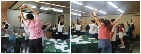 下午課程開始前,學(xué)員們跟隨視頻鍛煉與放松,以便更好的學(xué)習(xí)。